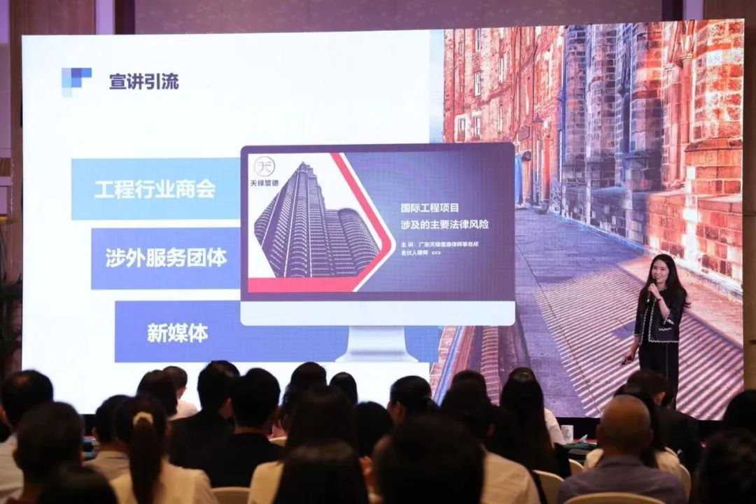 陈律师以团队经办的孟加拉机场工程案例引入,向现场评委、同行以及收看全球同步直播的观众,讲解了天禄涉外律师团队对境外工程项目从项目风险评估、境内外项目工程备案登记,到履约跟踪、争端解决提供全流程法律服务的过程,充分展现了法律服务产品的创新性、专业性及各项亮点。